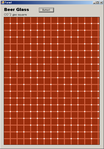 黒いブロックとブロックの間には何もないハズなのに黒色のものがきらきら光って?見えます。 2008/06/26に作っていたのですが、未公開でした。 [ インストーラ |ソースプログラム ] きらめきを利用してビールの泡を表現できないかと思い、オリジナル作品を作成しました。 ビールグラス 残念なことに、ビールの泡には見えません。今回は失敗していますね^^;。 酔っ払う前にはきらきら見ていたのが、酔うと見えなく(わかりにくく)なっていた記憶があります。 ソースプログラムは見当たらないので多分削除してしまったのだと思います。 |