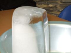 氷に対して、右側面の方向から見ると「白い部分」と「透明な部分」の境界があり、少し違った様子を見ることができました。