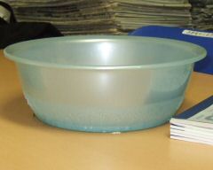 撮影開始時は洗面器中央に直立していたのですが、融け始めてから画面下側に移動してしまいました。